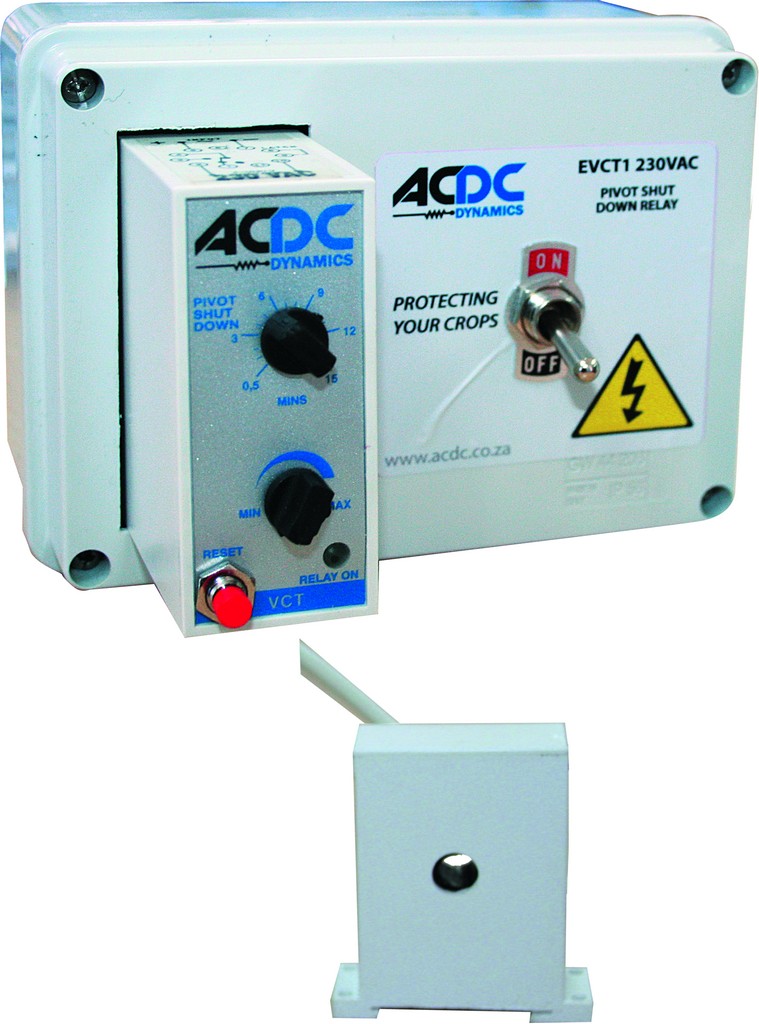 Popular VCT1 11 Pin Plug in module mounted in an easy connect box. Add on kit to the existing center pivot control panel to prevent overwatering should the pivot arm get stuck or the percentage timer misfunction. Supplied with CT-5 wuth flying leads for simple installation.