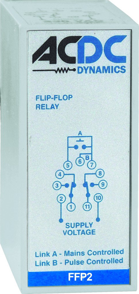 Pulse controlled. Link pins 6 and 7 (Link B). The relay is initially in any state, apply and supply voltage. The relay keeps its state. When the contact between pins 5 & 7 closes, the relay will change state. Remove the supply voltage. The relay will keep its state without the supply. Minimum time supply connected for relay to react: 1 second.