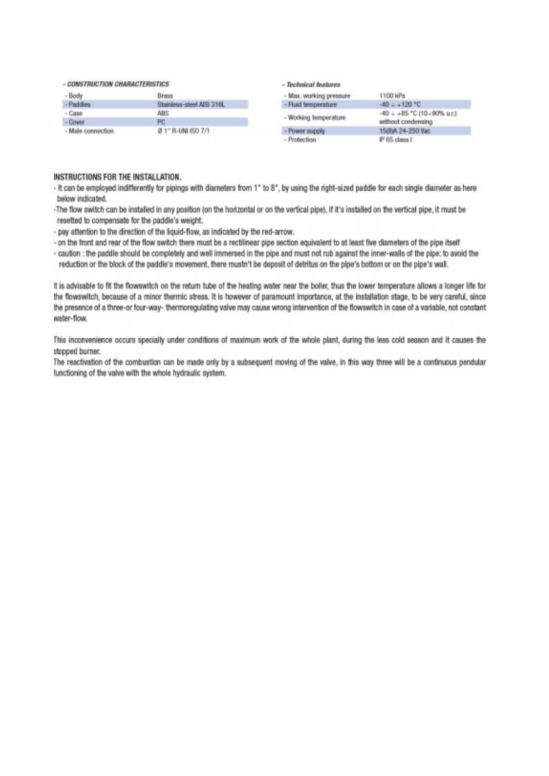 - Set point tolerance: ±25%
