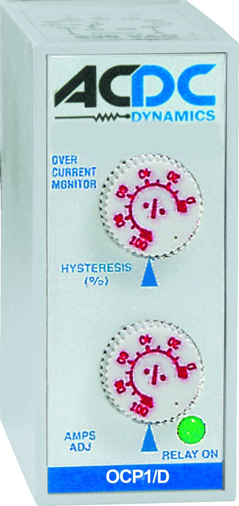 Trip point – The relay de-energizes when the input currrent rises above the set point and energizes when the input current falls a certain percentage (hysteresis) below the set point.