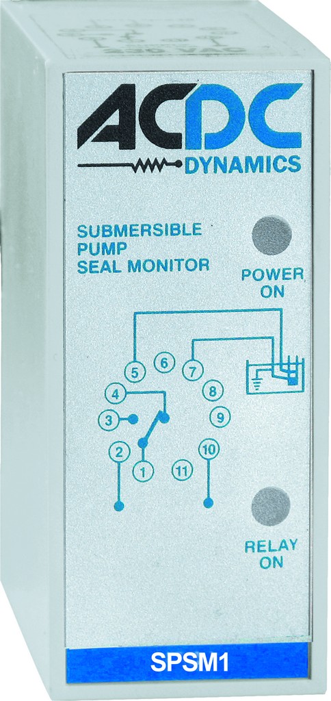 For protection of submersible motors against damage caused by the ingress of water. Terminals 5 & 7 connect to the motoring terminals on the submersible motor. The output relay energizes upon application of power. The relay will de-energize if probe current is more than 20µA or if probe resistance is less than 1Mohm. The relay will energize if probe current is less than 15µA or if probe resistance is more than 1,4Mohm.