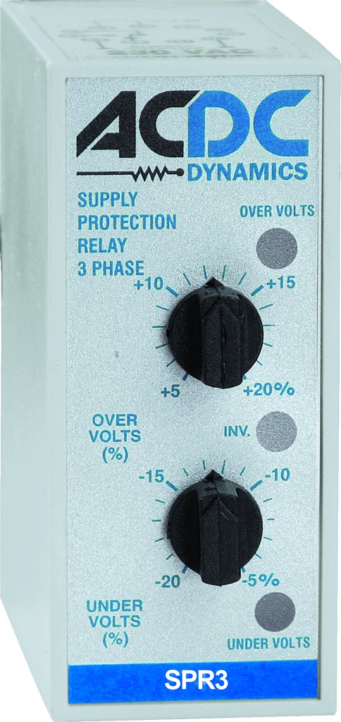 This three phase (3 & 4 wire) unit monitors the supply voltage and combines the protection features of the SMP1 and TWCP1. The output relay energizes if the phases are all present, in the correct sequence and each voltage is to within the adjustable over and undervoltage limits.